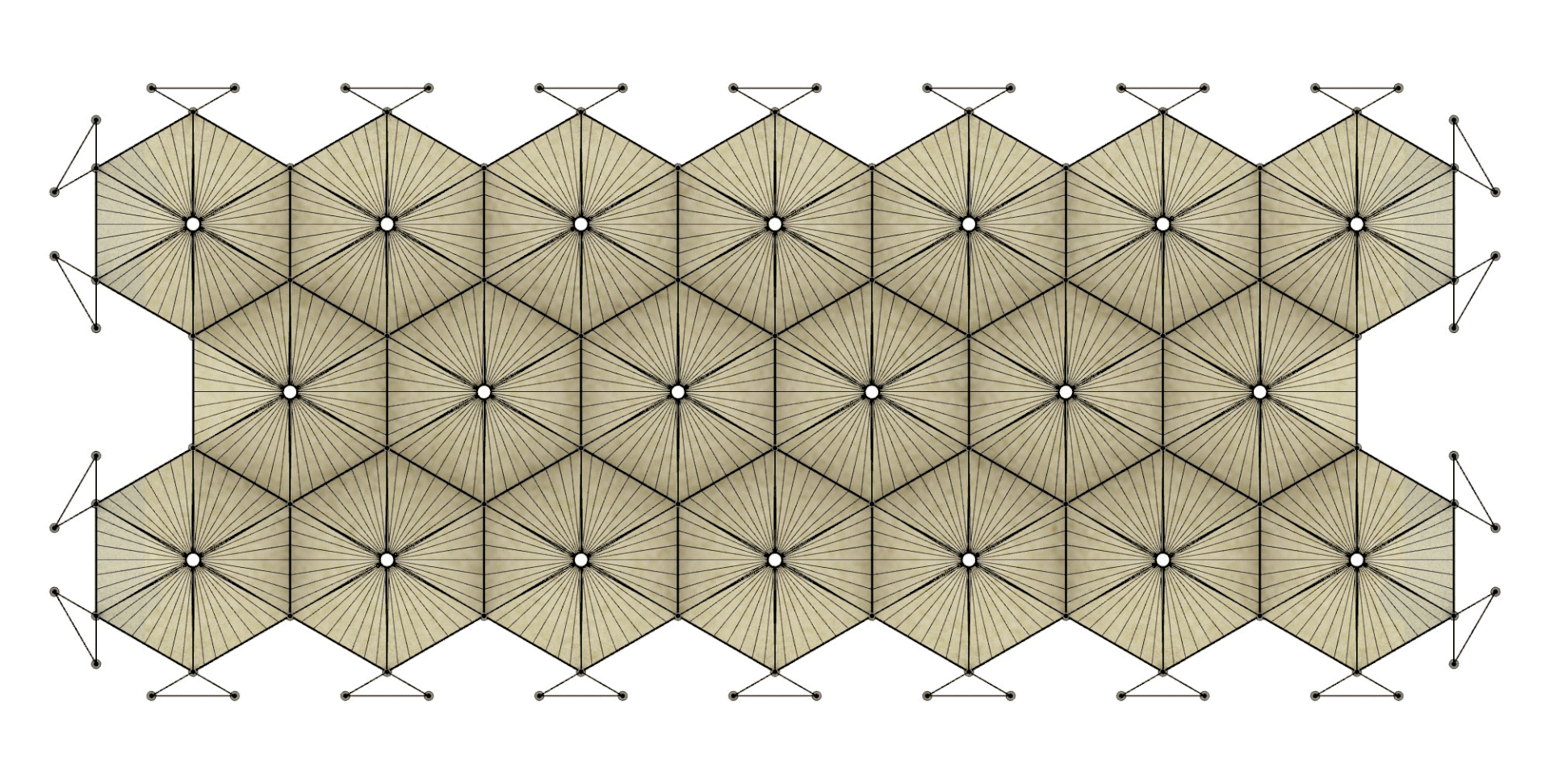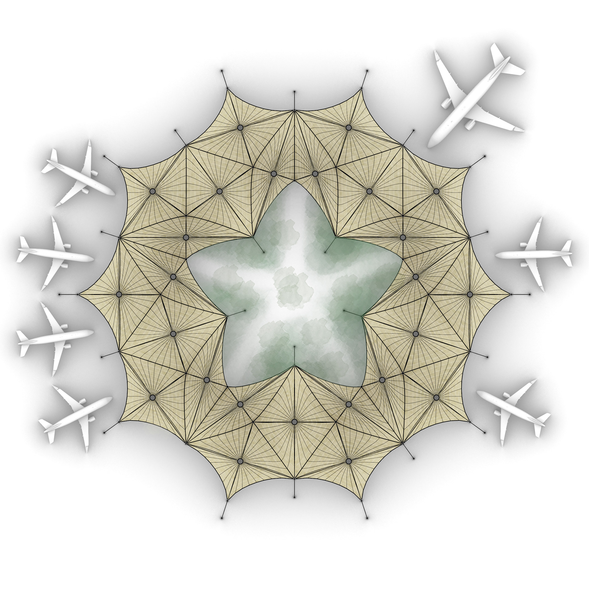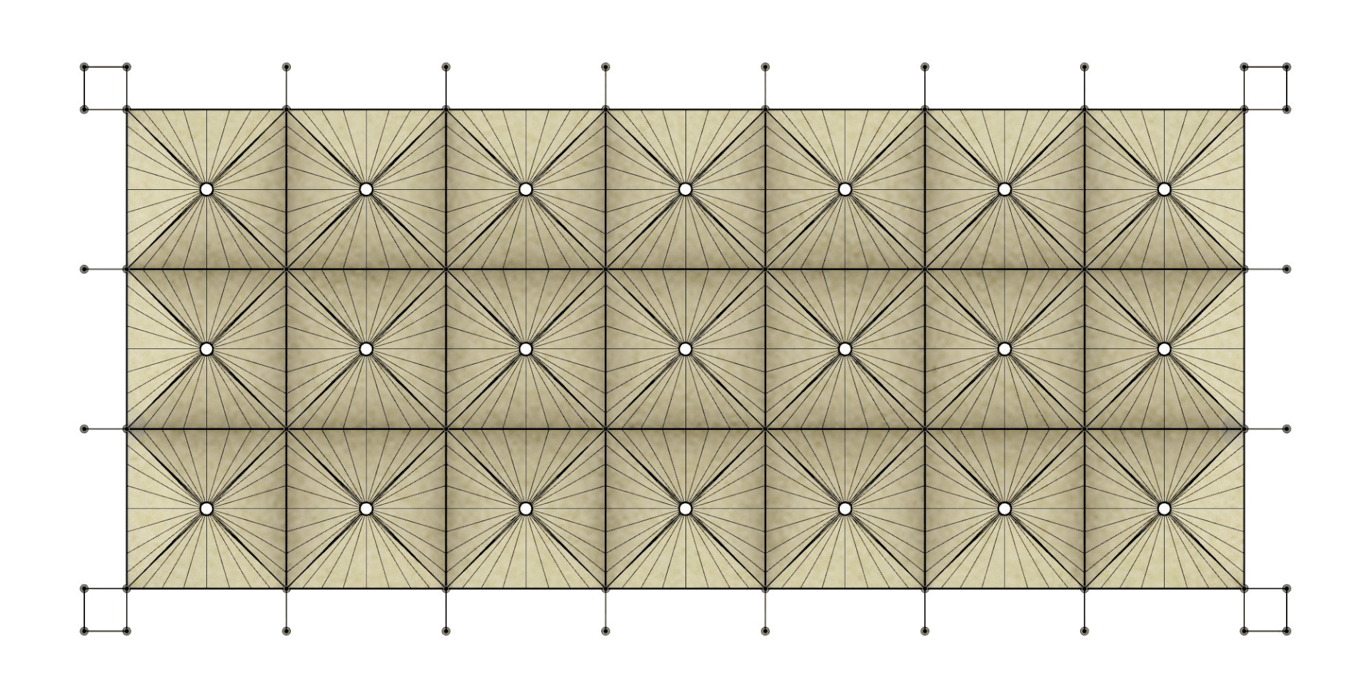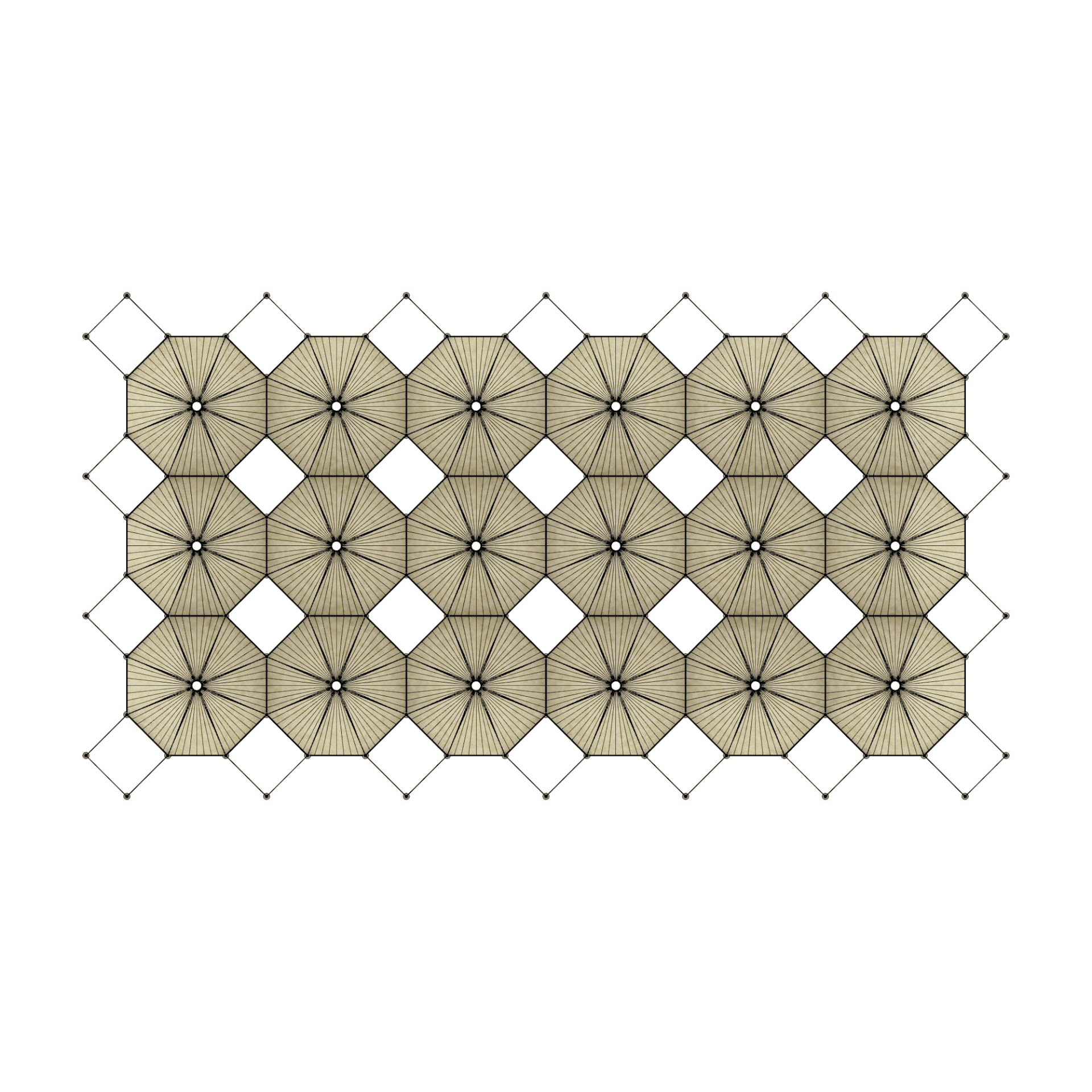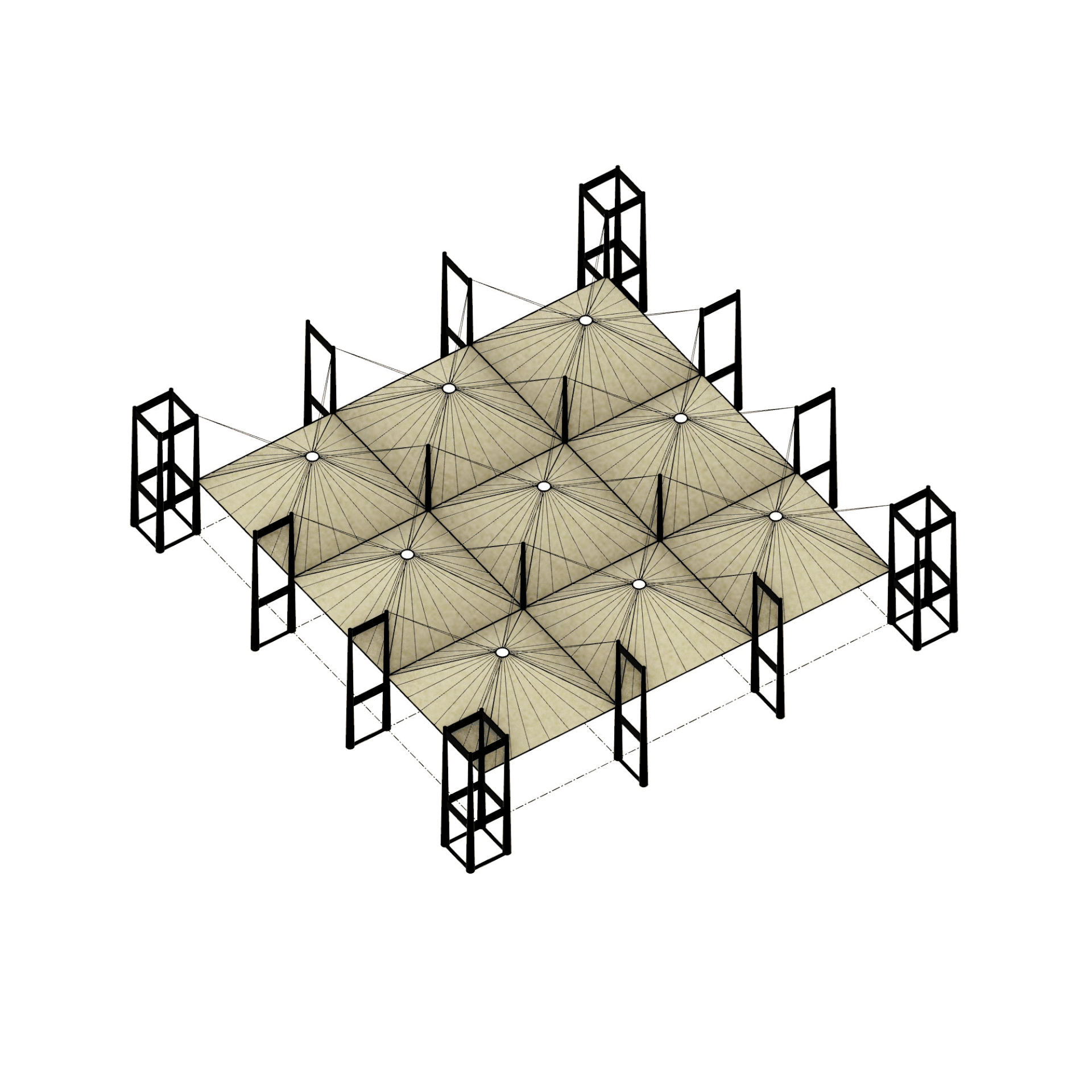 Acknowledging the geometric freedom enabled by a membrane roof and no walls, this project asked what alternative grids could be considered beyond a square grid.