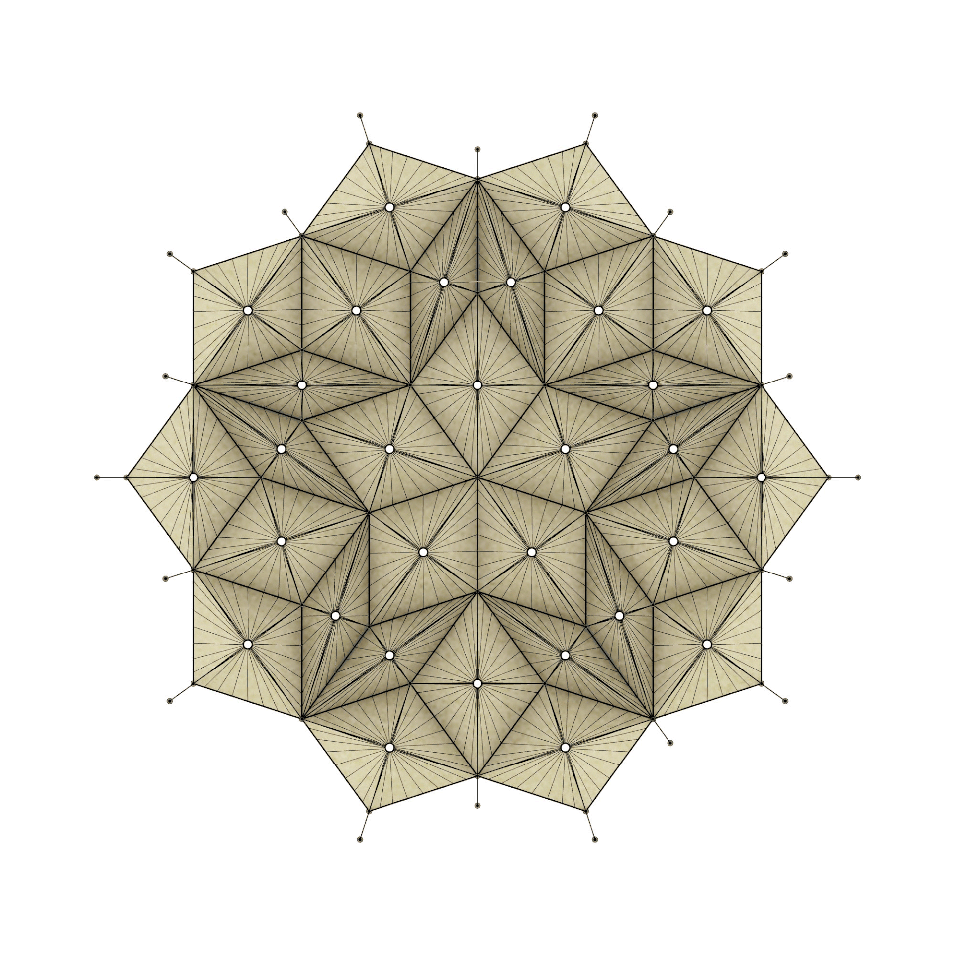 Penrose tiling offered an opportunity to explore a radial pattern. Removing diamond shapes from the Penrose grid creates voids in the plan, and opportunities for the geometry to surprise.