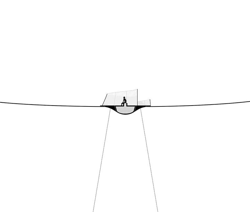 Moments of enclosure are offered through the placement of objects within tension rings, offering the ability to occupy previously unreachable spaces.
