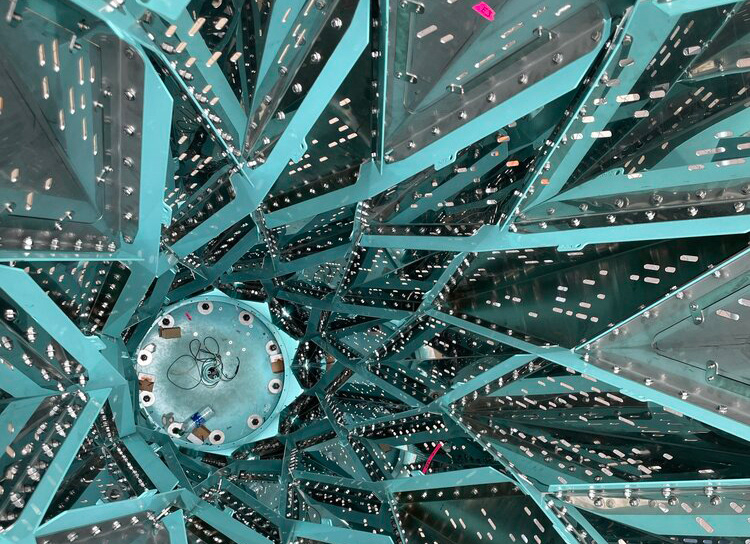 Computational design and digital fabrication were used to precisely lay out and laser cut plate assemblies. Sections of the assembly could be built separately, and bolted together on site.